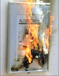 Samen met de vrijwillige brandweer durfden we bij AllesRahmen.de resp. alleslijsten.nl de vuurproef aan. Volgens de Duitse brandpretentiesvoorschriften, die trouwens tot de strengste ter wereld behoren werd in het onderzoek het brandgedrag van een gewoon aluminium frame en dat van het A1 brandpretentieslijst "Econ breed" met ESG veiligheidsglas van het merk Mira getest. Wat was het resultaat? Ziet u zelf wat voor veiligheid een onbrandbaar lijstje biedt in vergelijking met een conventioneel lijstje van aluminium strips: