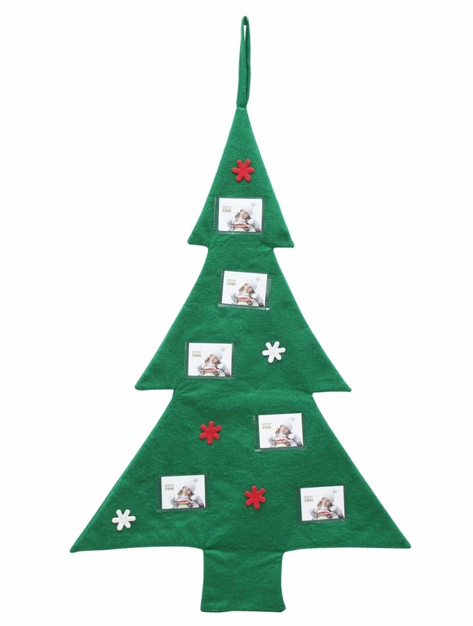Als u geen ruimte hebt voor de echte kerstboom, kunt u uw huis versieren met de groene stoffen kerstboom. Hang hem gewoon aan de muur en voeg zes prachtige foto's en foto's toe. Zo ziet een individuele kerstboom eruit.