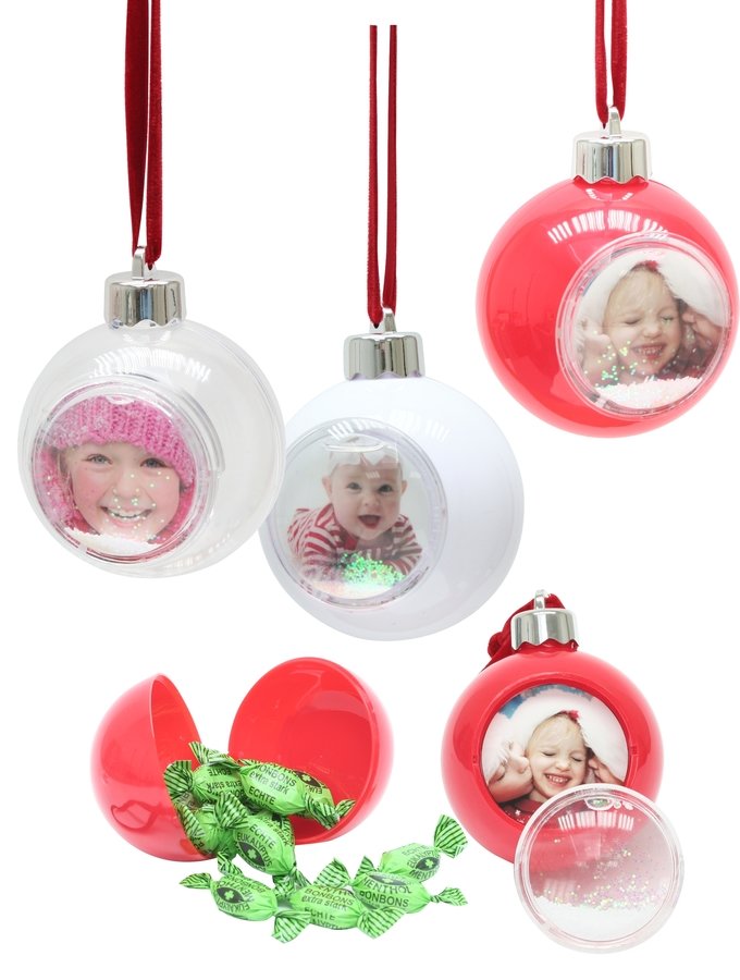 Als u de kerstboom individueel wilt versieren, heeft u nu de mogelijkheid om dit te doen met de nieuwe foto kerstbal van onze partner Deknudt. In onze online shop kunt u de zeer populaire foto en sneeuwbol in verschillende kleuren bestellen. Rood, wit en transparant, een transparant deksel gevuld met sneeuw en glitter beschermt uw mooiste foto. De foto kerstbal biedt veel meer dan een eenvoudige decoratie, omdat de holte van de bal ook gevuld kan worden met zoets of koekjes. De foto kerstbal is ook perfect als cadeau-idee, omdat er binnenin voldoende ruimte is voor waardevolle kleine voorwerpen zoals juweltjes of geldcadeaus. Het geschenk kan dan gebruikt worden als kerstbal of zelfs direct aan de boom gehangen worden. Vier Kerstmis met kerstballen versierd met foto's van uw kleinkinderen, kinderen, ouders of grootouders. Heeft u vrienden die niet bij u zijn met Kerstmis? Met de fotokerstbal kun je stijlvol denken aan lieve mensen en hen op deze manier laten deelnemen aan het feest.